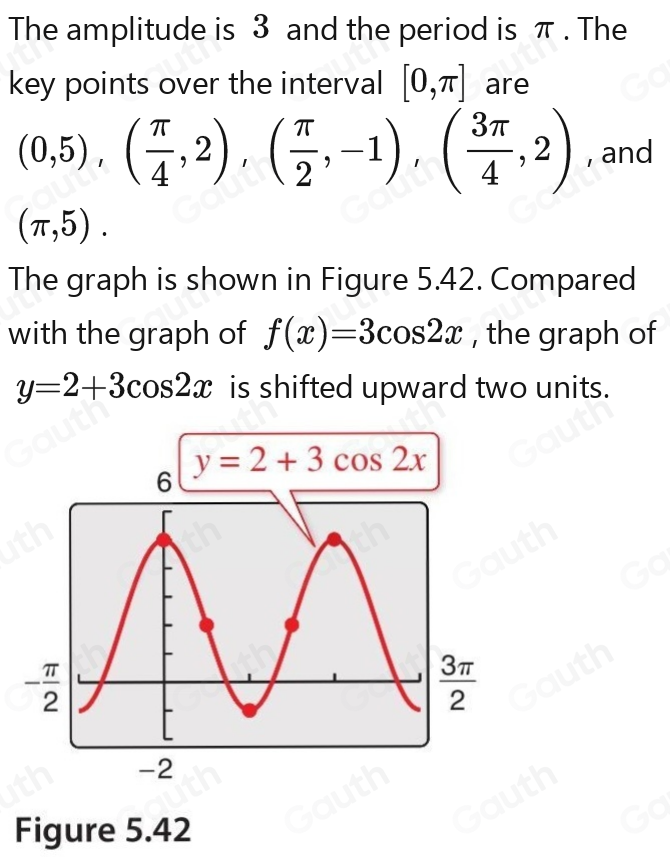 Solved: Use a graphing utility to analyze the graph of y=2-3cos 2x. [Math]