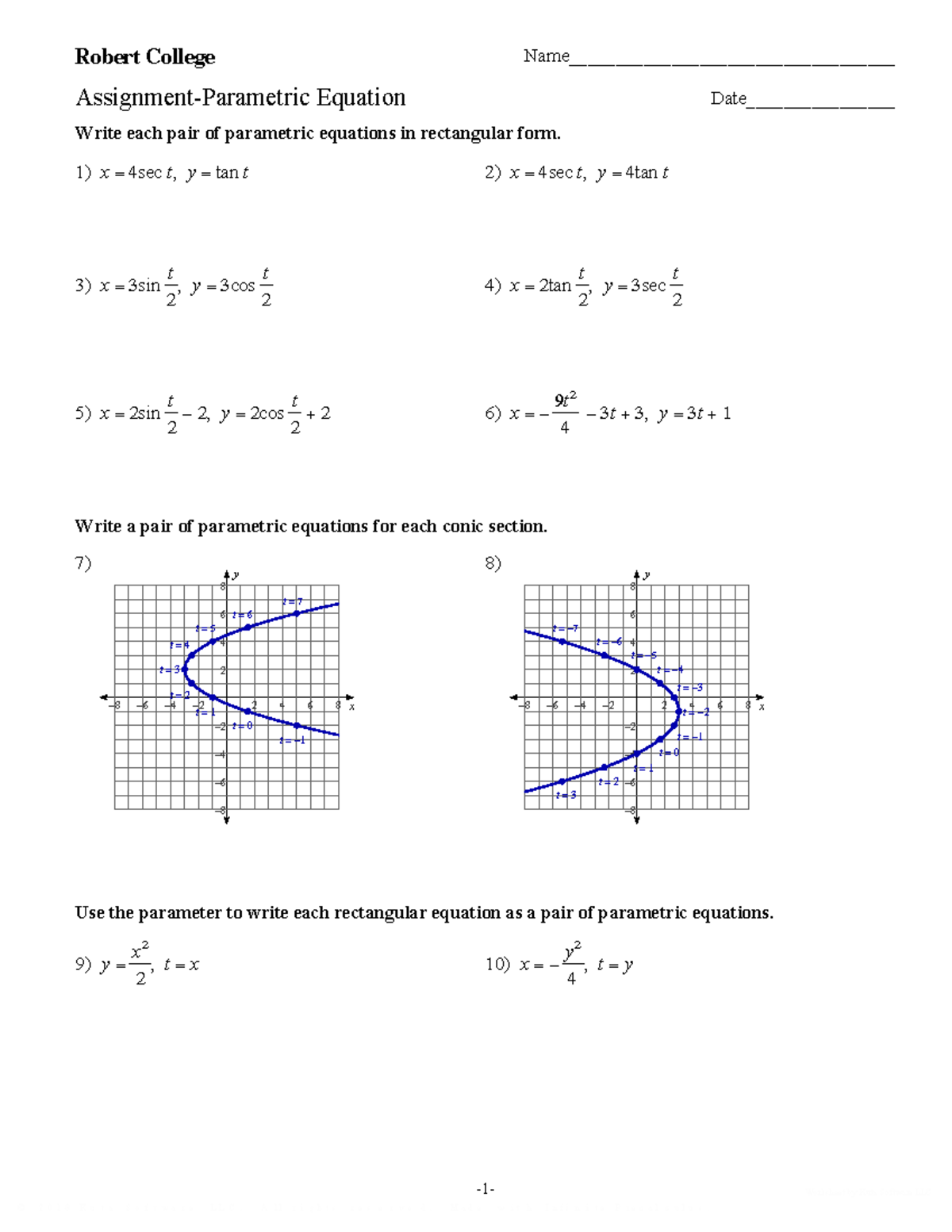 03 Parametric Equations and Graphs with Key: Rectangular Forms - Studocu