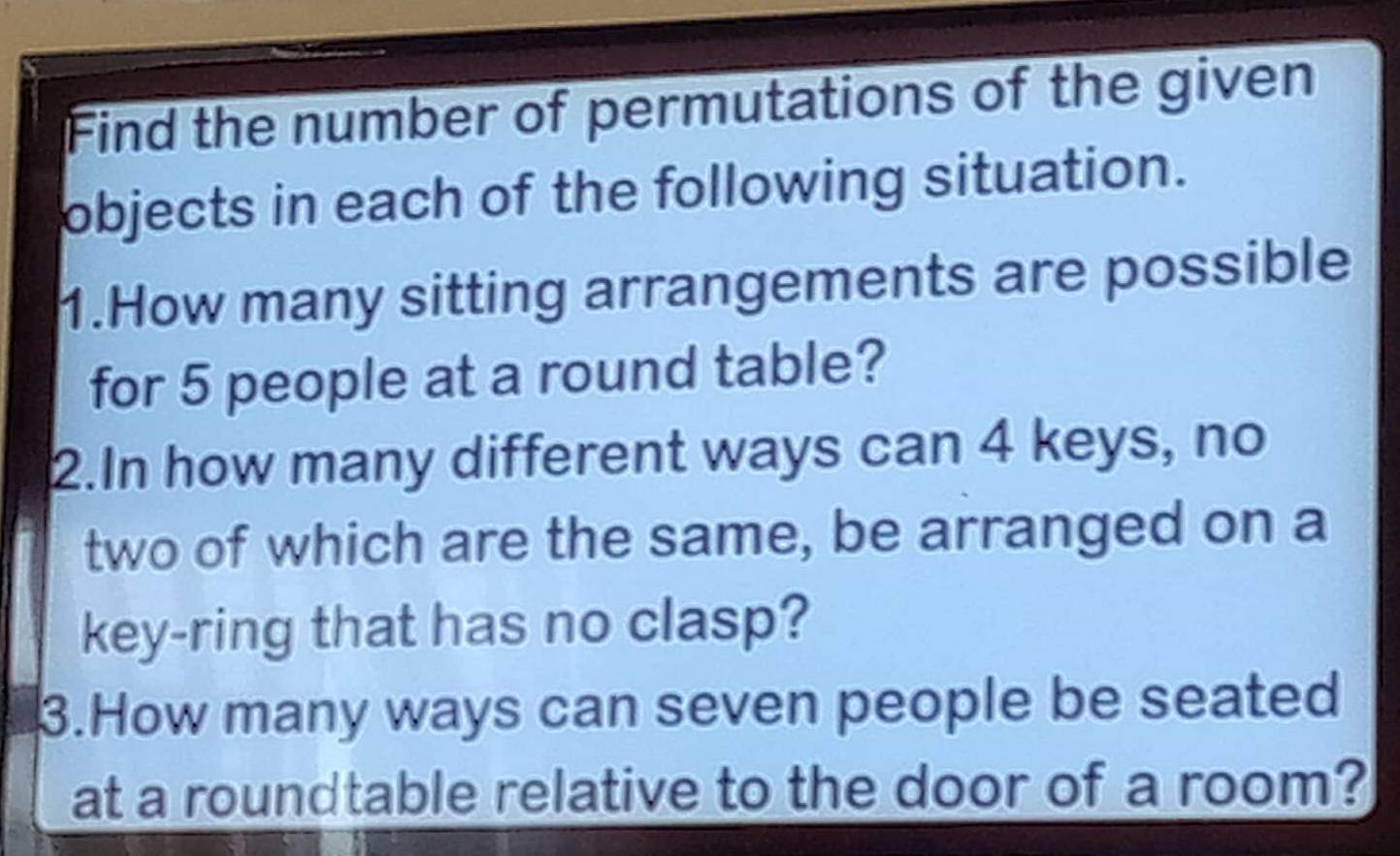 Circular Permutations Key Point: The permutation of n objects arranged i..