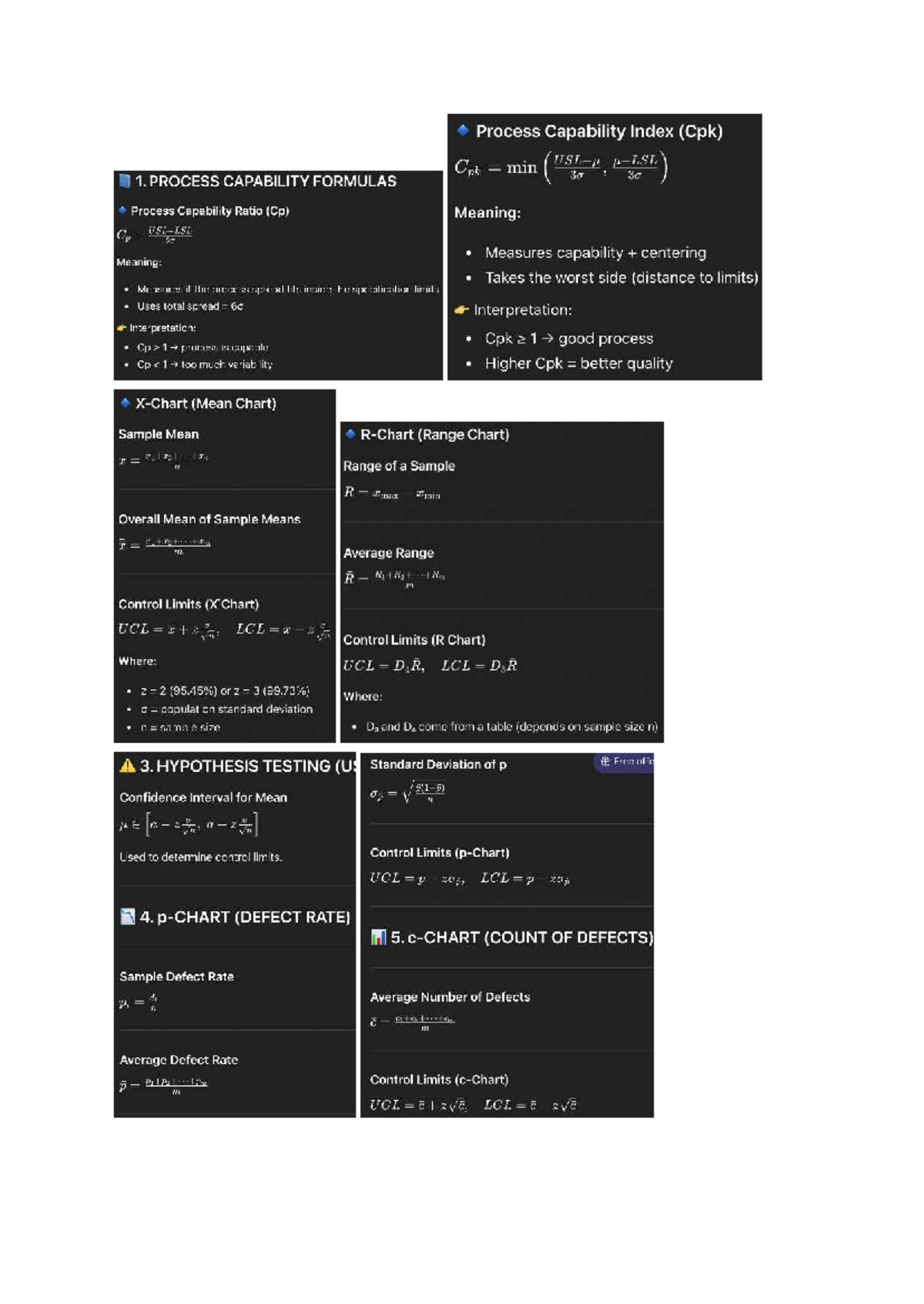 Process Capability Index (Cpk) Formulas and Hypothesis Testing - Studocu