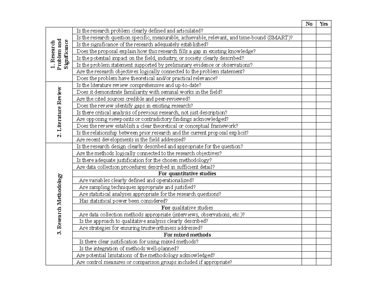 Research Proposal Evaluation Checklist: Methodology, Design & Ethics ...