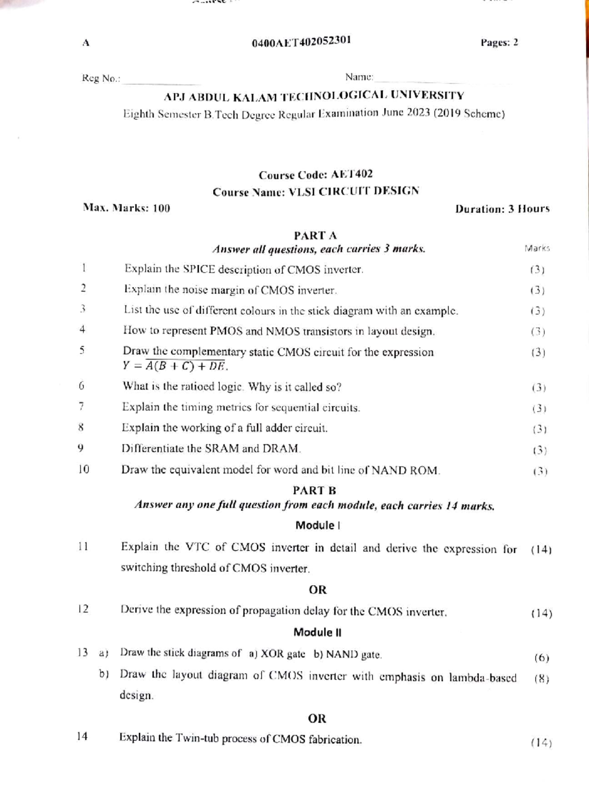 AET402 VLSI Circuit Design Final Exam Question Paper - June 2023 - Studocu