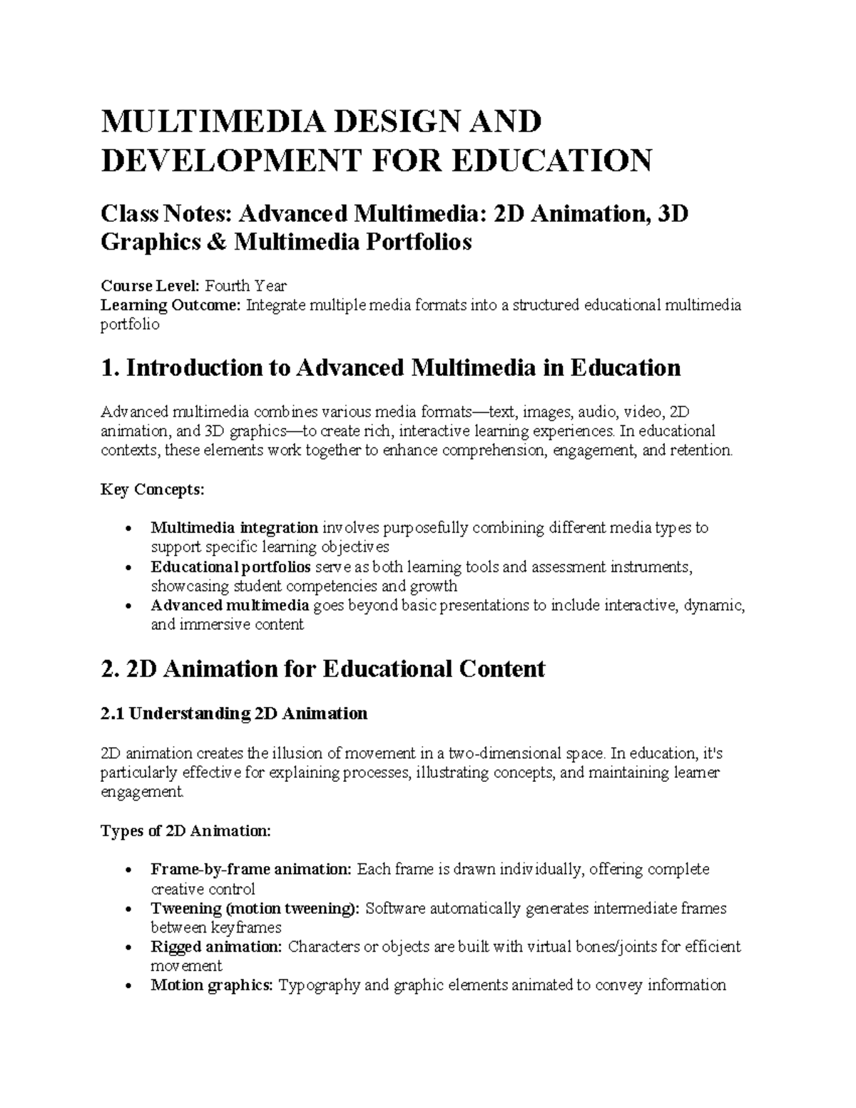 MULTIMEDIA DESIGN AND DEVELOPMENT FOR EDUCATION: Advanced Multimedia ...