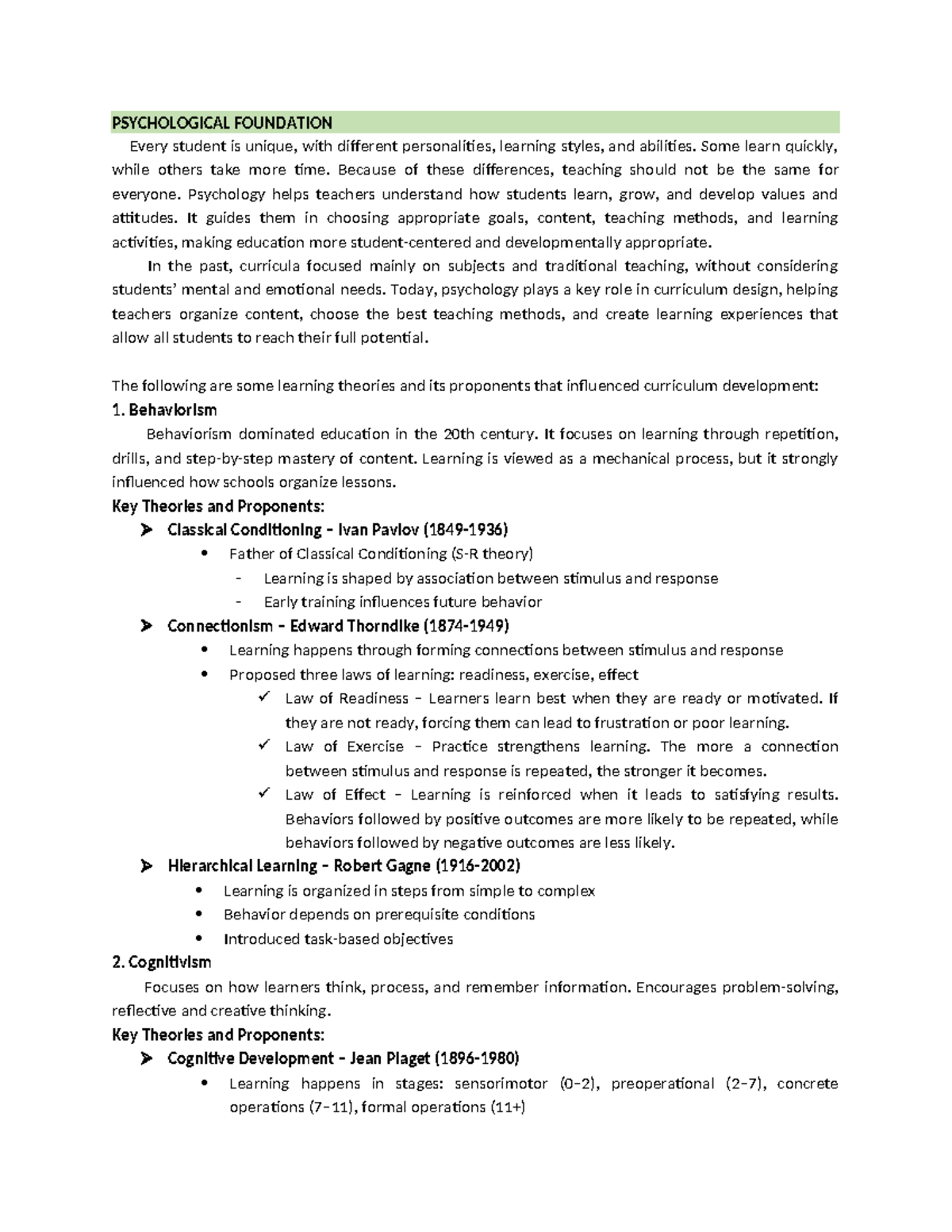 PSY 101: Foundations of Curriculum Development - Key Theories ...