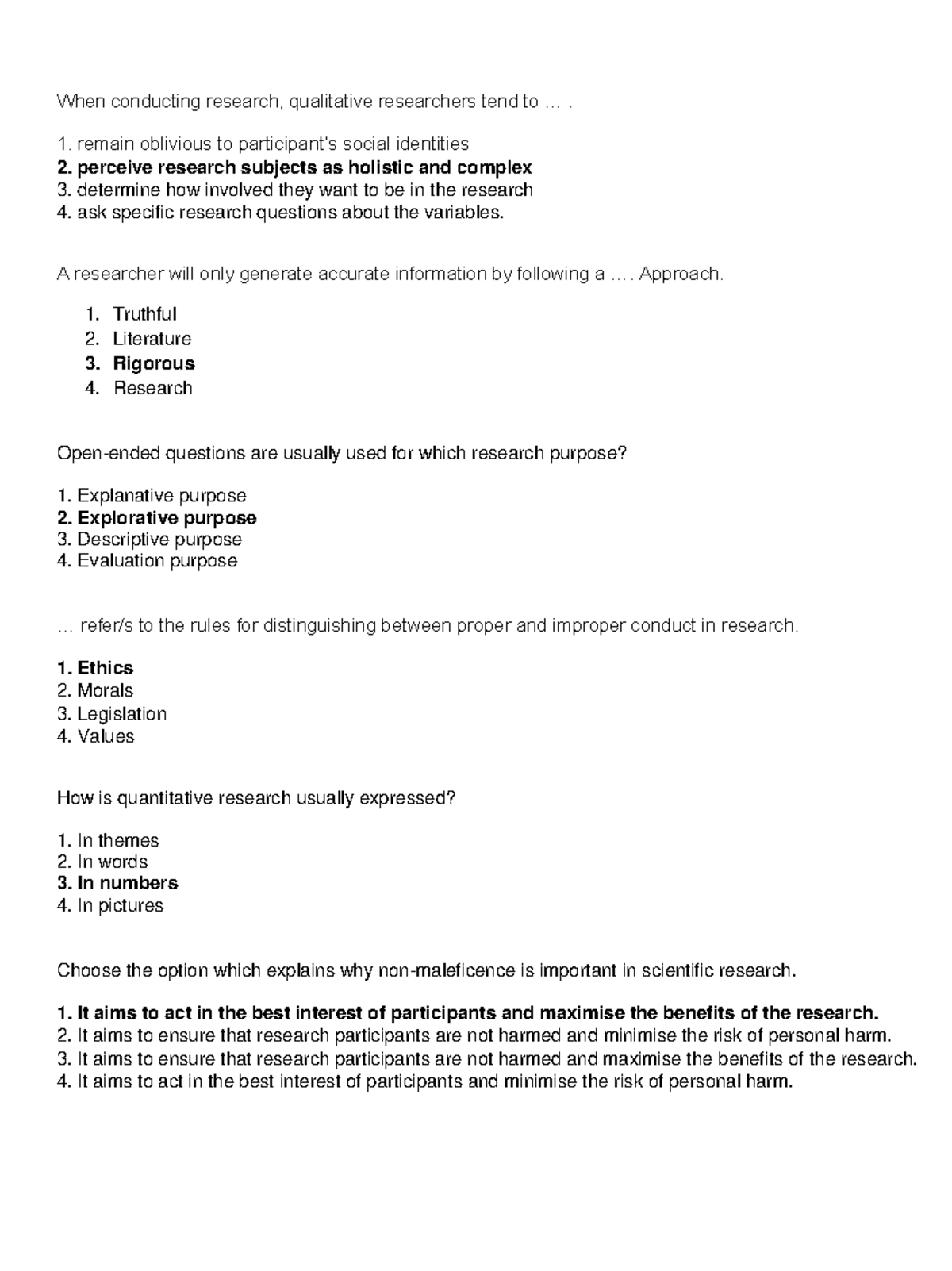 Cmy2606 MCQ Notes: Key Concepts in Research Methodology - Studocu