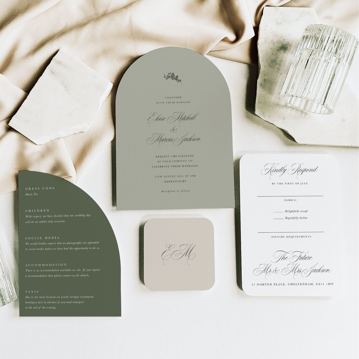 Classical Arched & Shaped Wedding Invitation Set – Elle Bee Design Limited