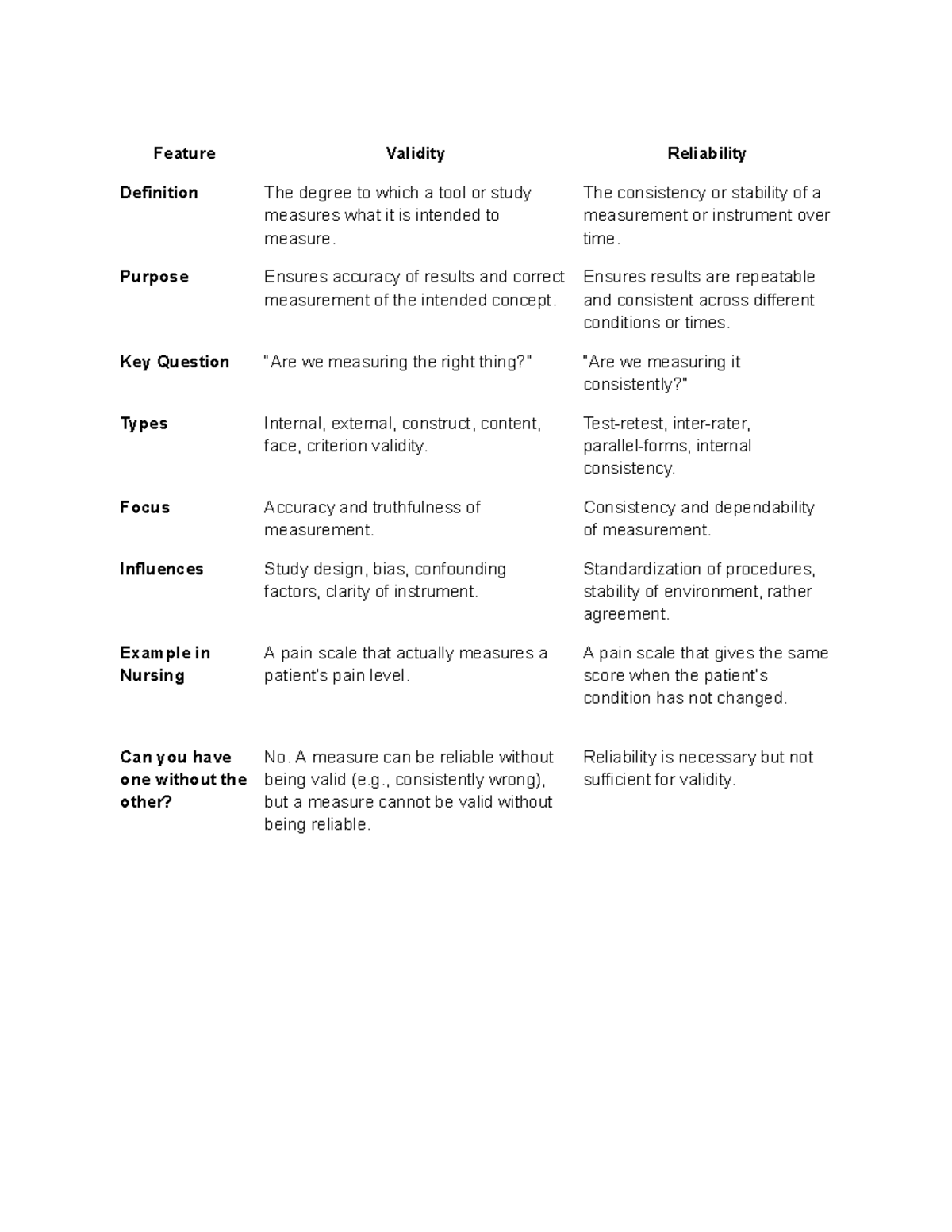Feature Validity and Reliability in Measurement: Key Concepts - Studocu