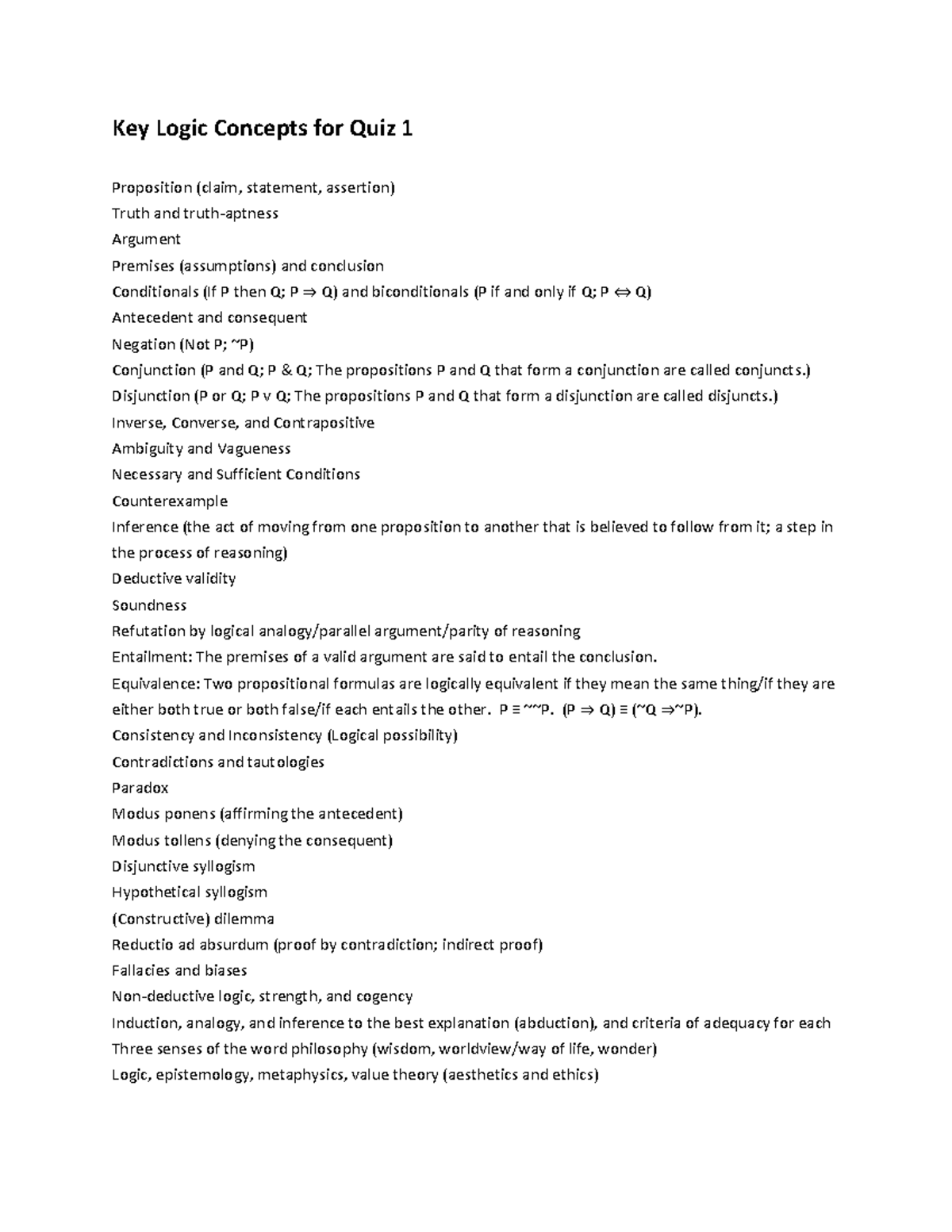 Key Logic Concepts for Quiz 1 in Logic 101 - Studocu