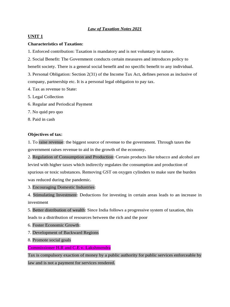 Law of Taxation Notes (Keya) | PDF