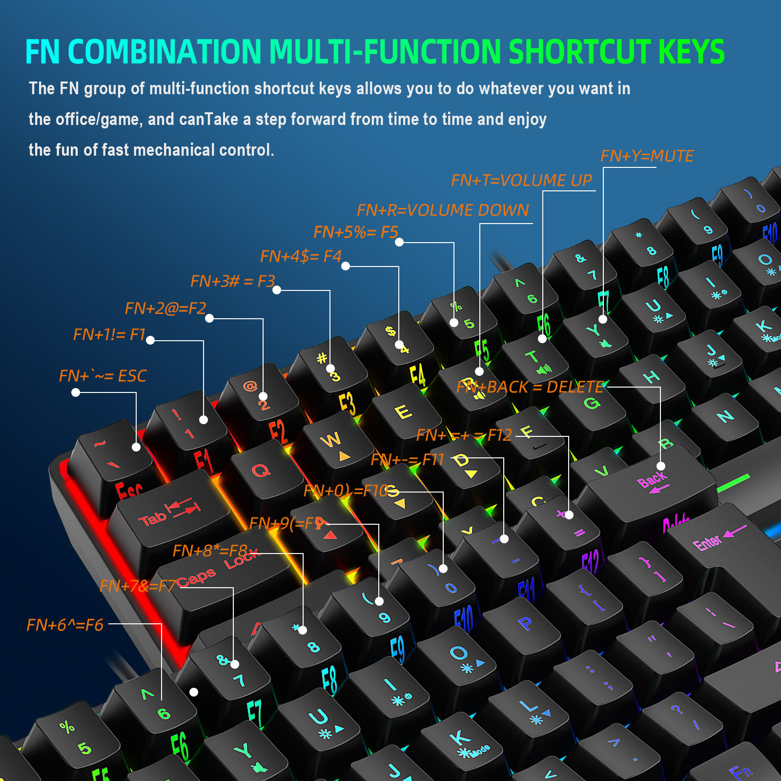 Buy RGB Gaming Keyboard and Mouse Combo Rainbow Backlit Lighted,Wired ...