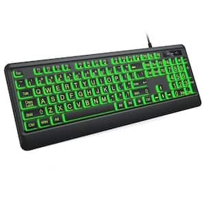 Backlit Wired Keyboard - Large Print Computer Keyboard with 7 Colors ...