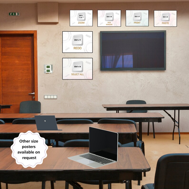 Keyboard Shortcuts Classroom Decor- Poster Set of 18 for Computer lab