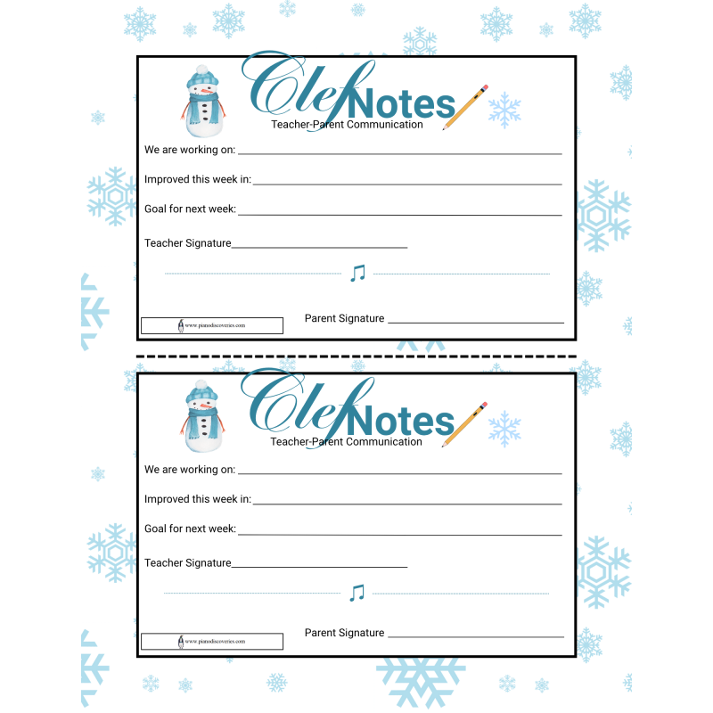 Clef Notes: Teacher-Parent Communication Helper (PDF) by Piano Discoveries