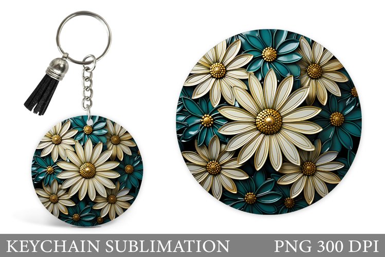 Daisy Flowers Keychain Design. Flowers Round (3904573)