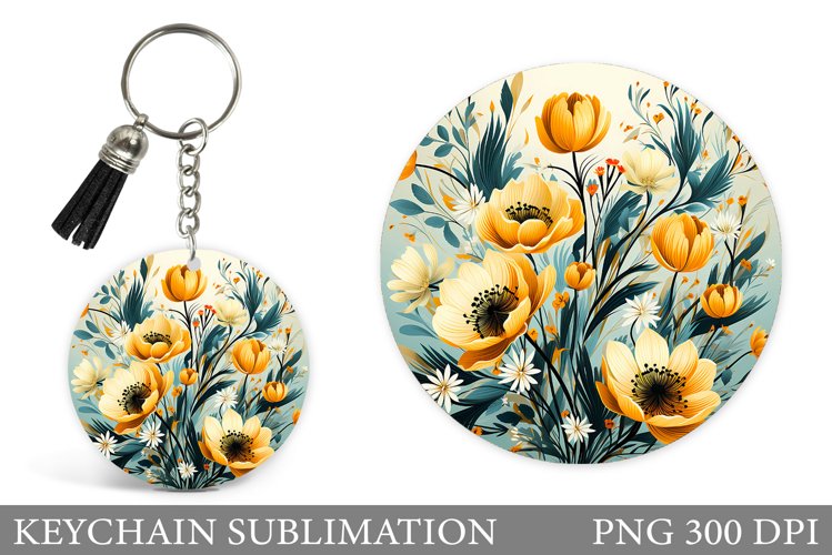 Flowers Keychain. Floral Round Keychain Graphic by shishkovaiv ...