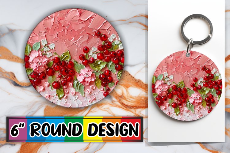 Tropical Flowers Round Keychain. 3D Flowers Keychain Design