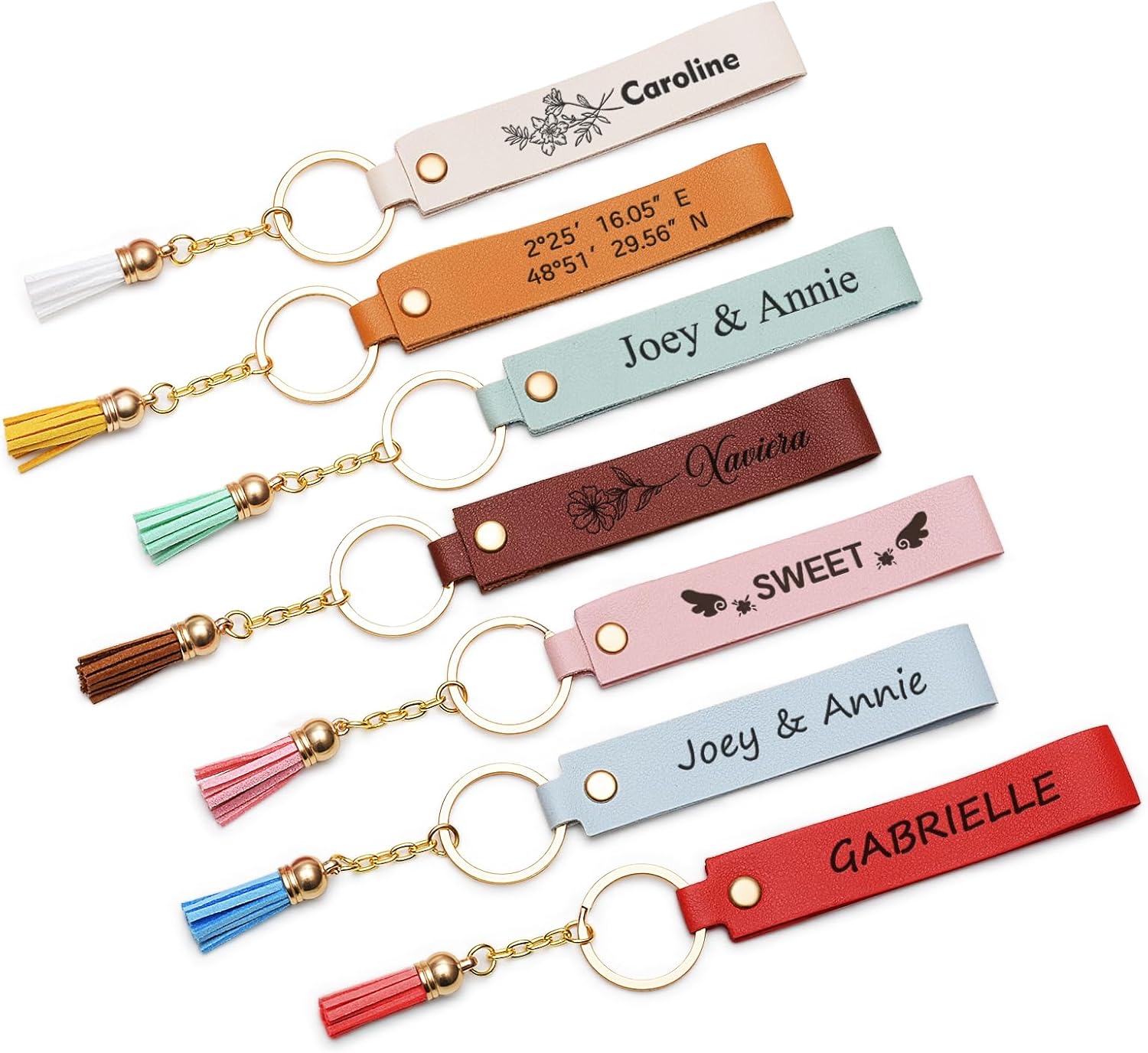 Personalized Leather Keychain, Custom Engraved Key Ring, Gift for Her ...