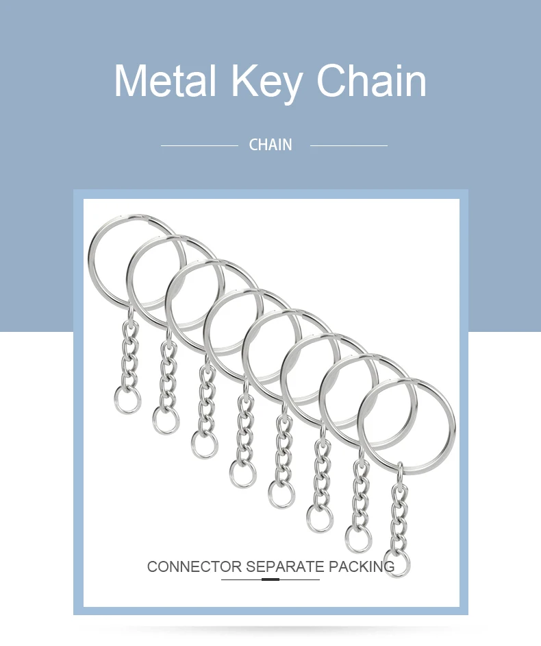 10-20Pcs-Silver-Plated-Metal-Split-Keychain-Parts-Key-Rings-with-Chain ...