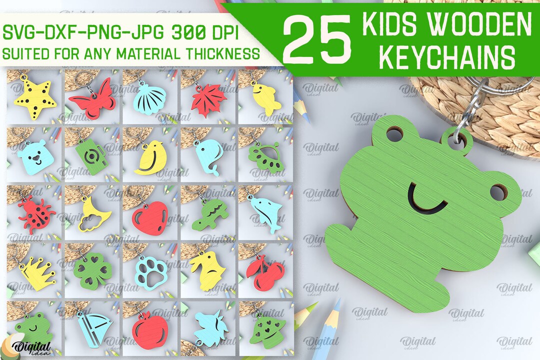 Kids Keychains Bundle, Cute Keychain Laser Cut, Childrens Wooden Key ...