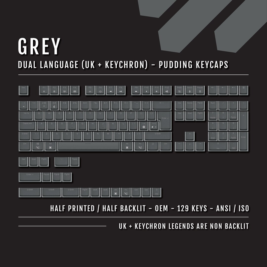 UK Grey Pudding Keychron Layout Keycaps - 129% Size - Dual Language ...