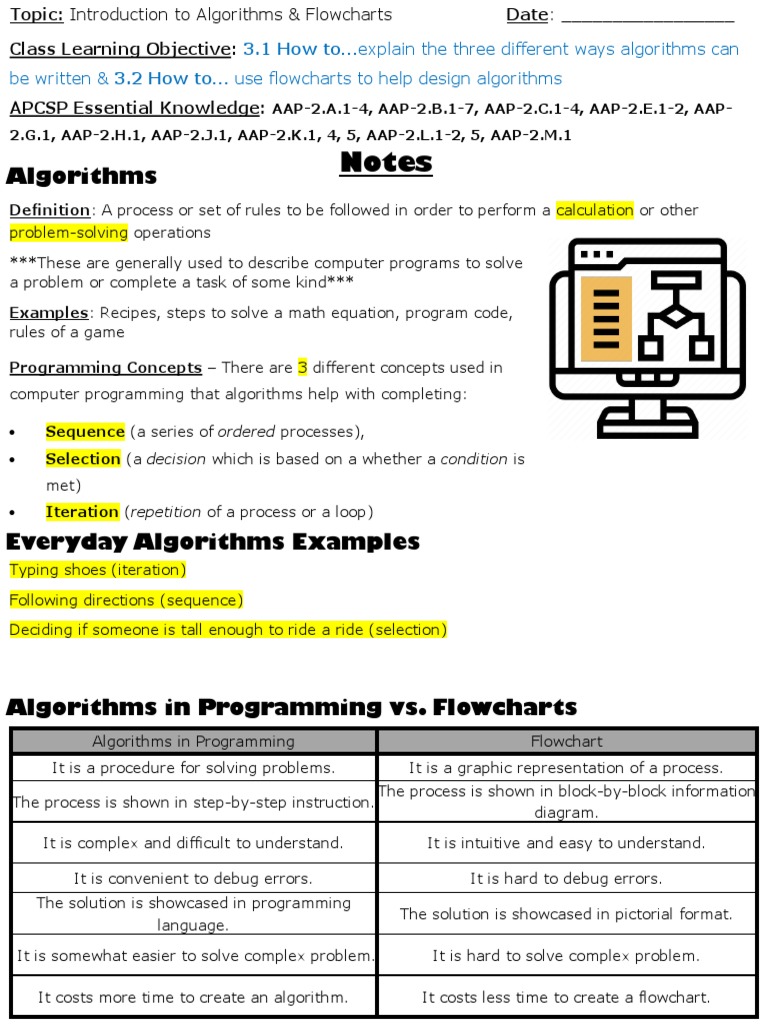 01 - Keyed Notes - Introduction To Algorithms & Flowcharts | PDF ...