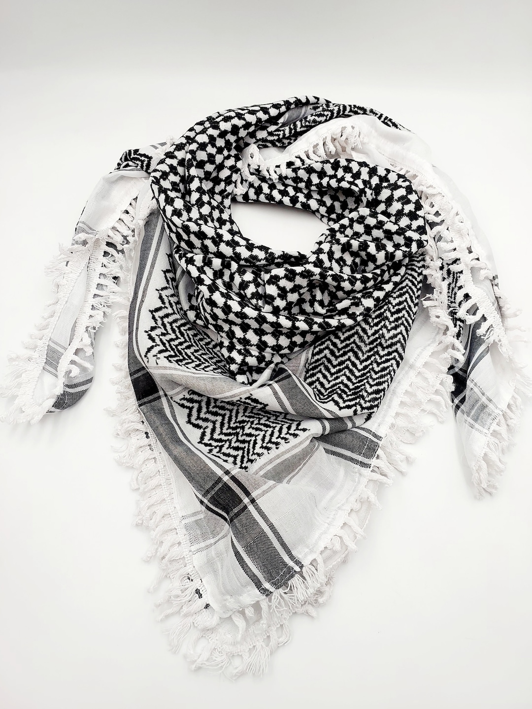 palestinian keffiyeh scarf white black – Zaytoon Gift