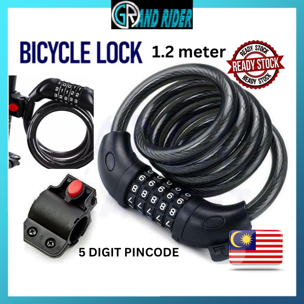Bike Chain Lock Coiling 5-Digit Combination Lock for Keyless Tail Light ...
