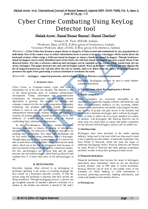 (PDF) Cyber Crime Combating Using KeyLog Detector tool