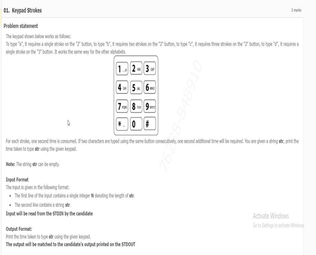 Solved 01. Keypad Strokes 2 marks Problem statement The | Chegg.com