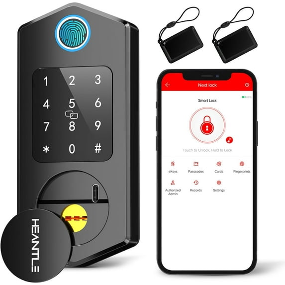Keyless Entry Door Lock,HEANTLE Fingerprint Smart Deadbolts with ...