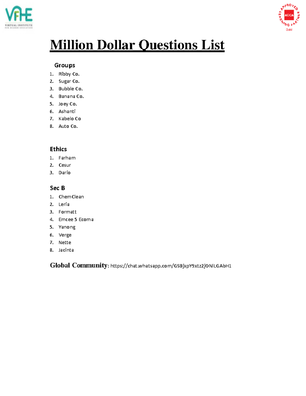 Million Dollar Exam Success Question List - Audit and assurance ...