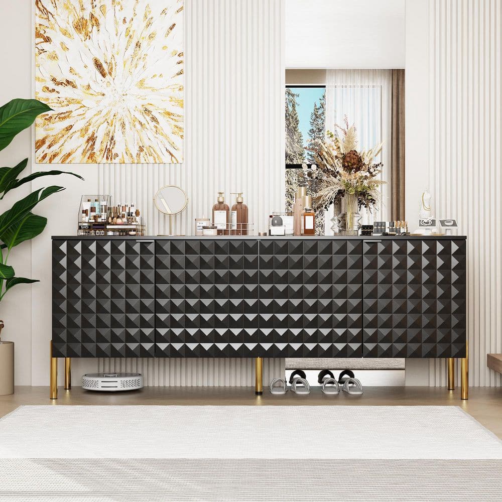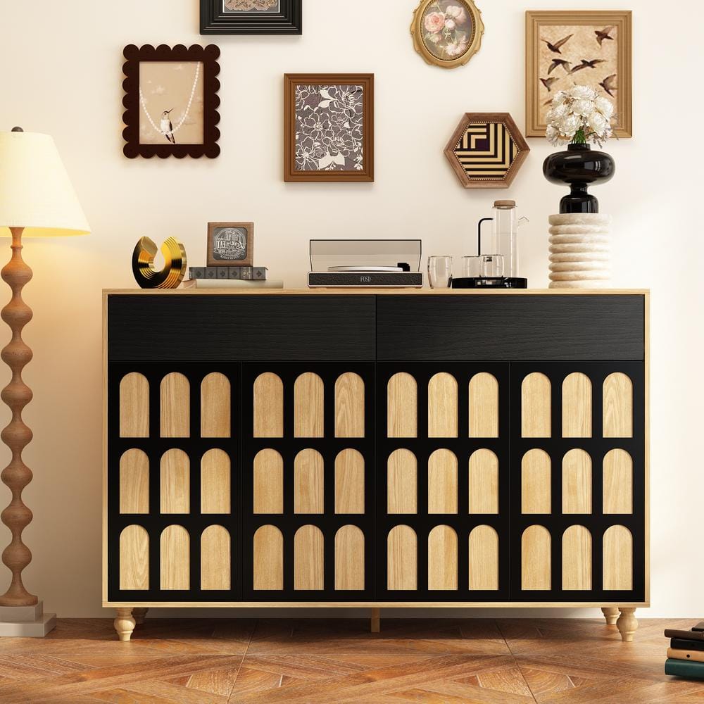 FUFU&GAGA 55.3 in. Black Rectangle Wood Console Table with Textured ...