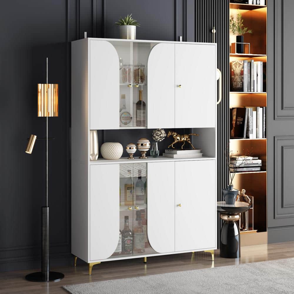 FUFU&GAGA 47.2 in. L White Rectangle Wood Console Table Storage Cabinet ...