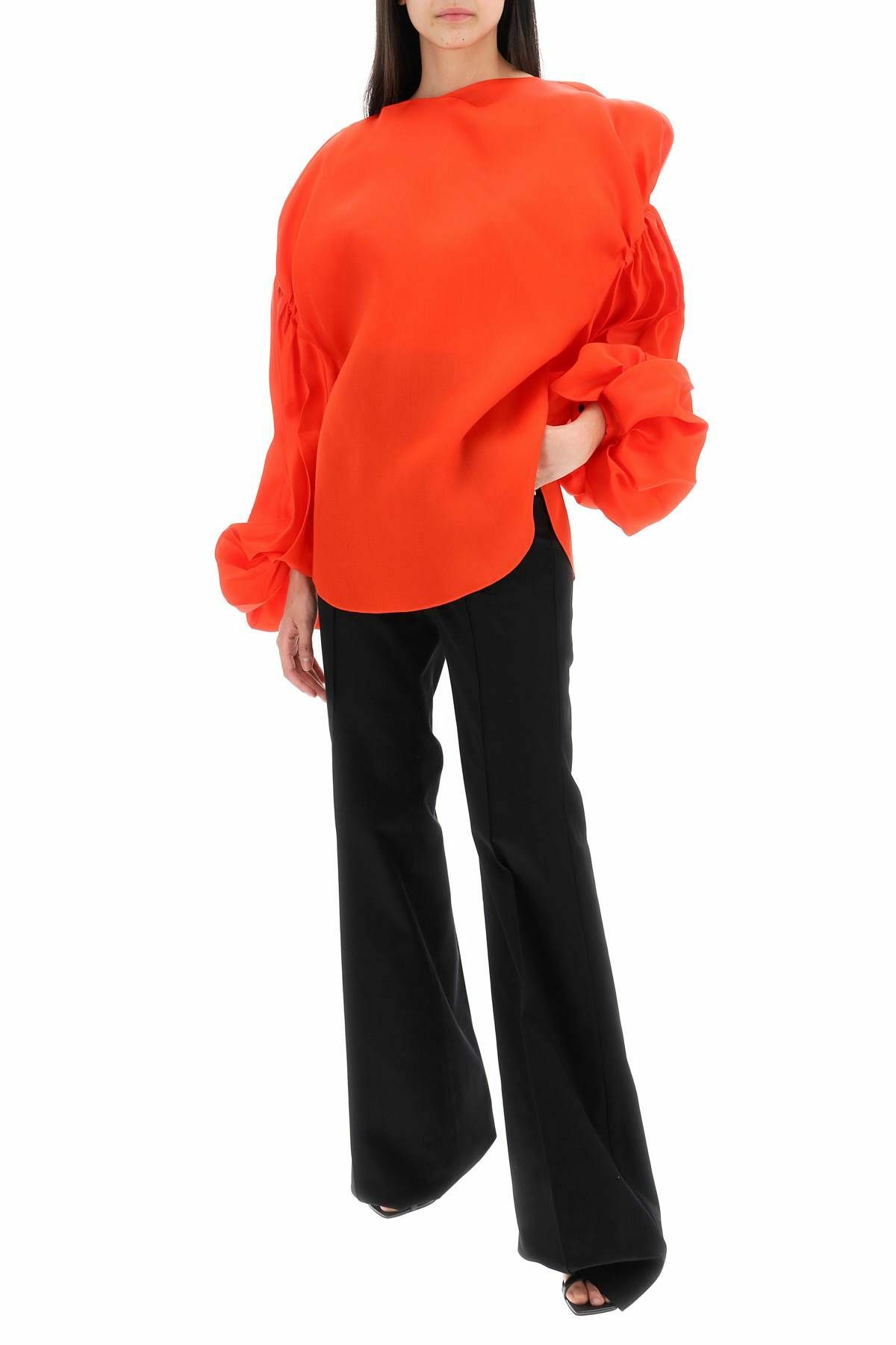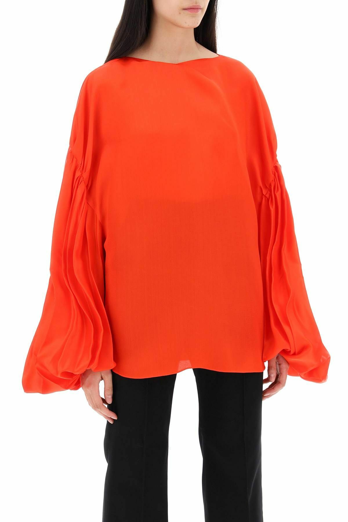 Khaite Cristiana Blouson-sleeve Silk Top | Editorialist