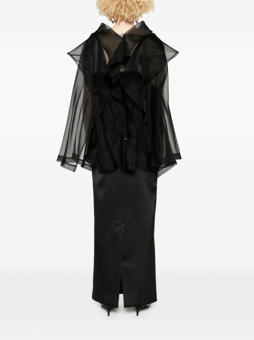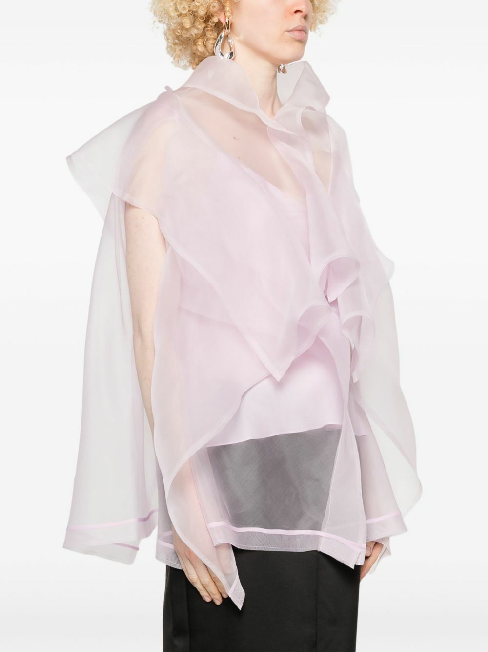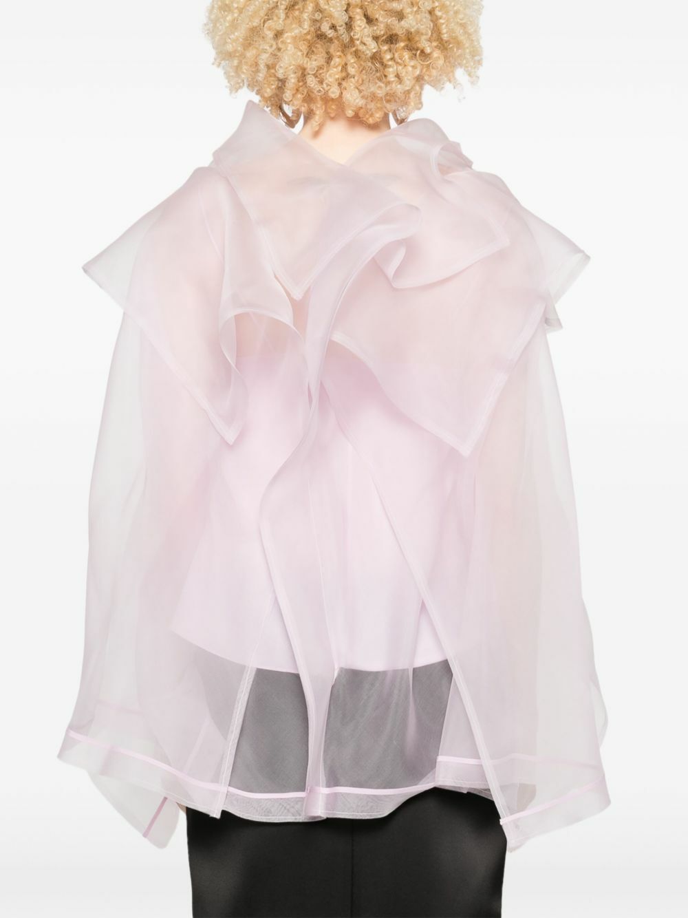 KHAITE long-sleeve Tulle Blouse | Neutrals | FARFETCH