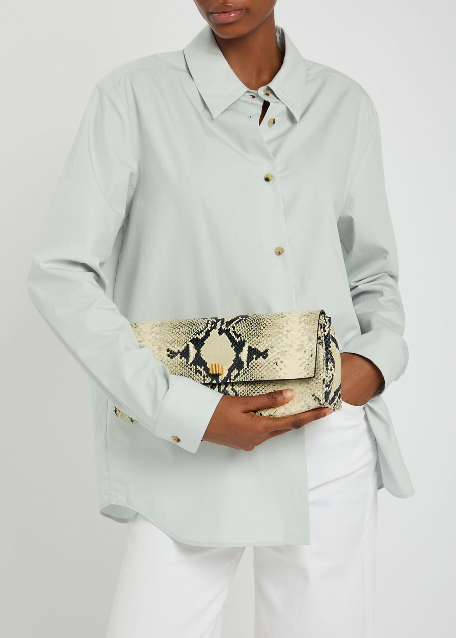 KHAITE Audrey Python-effect Leather Clutch | endource