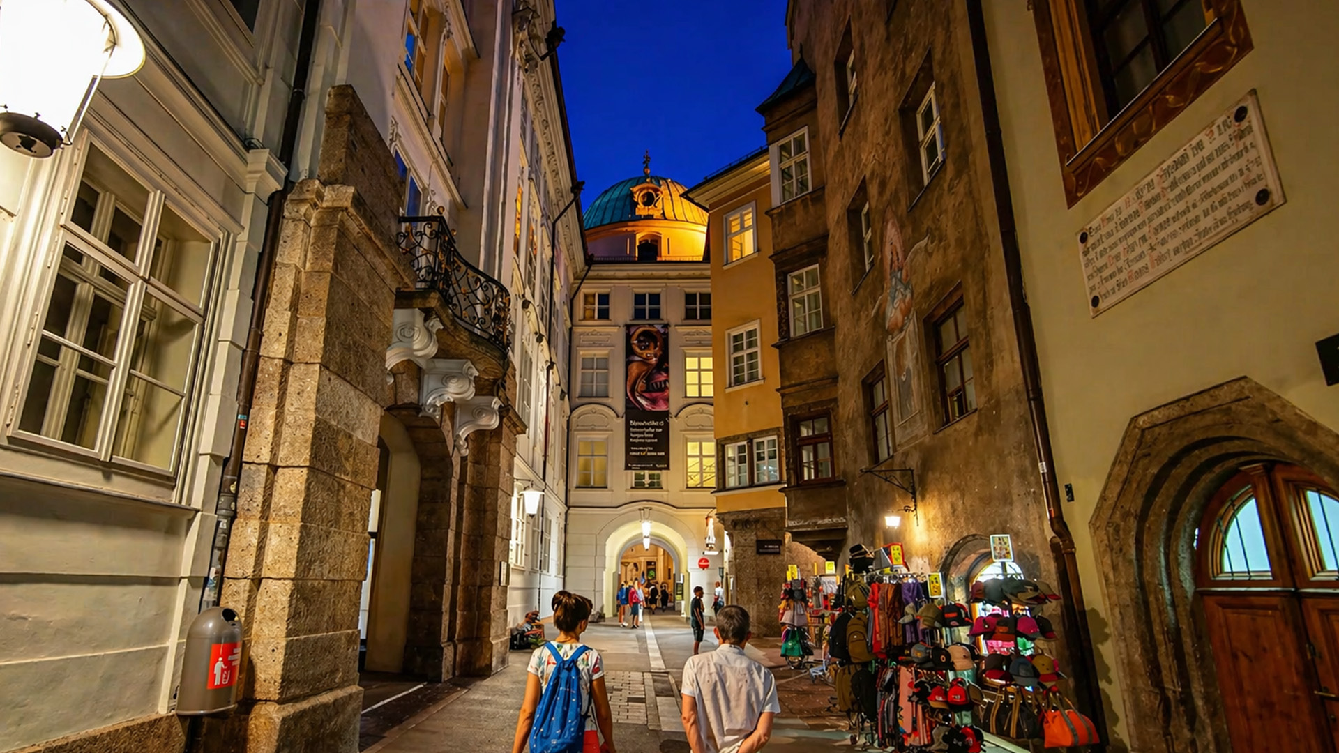 Promenade du soir à Innsbruck, Autriche, avec vue sur les Alpes (4K)