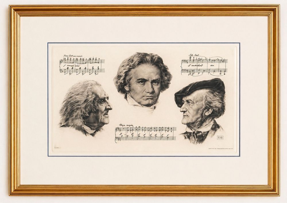 Gravure Beethoven Liszt Wagner encadrée KIB – musique classi (Gebraucht ...