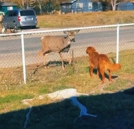 Deer brings her family to meet her dog best friend