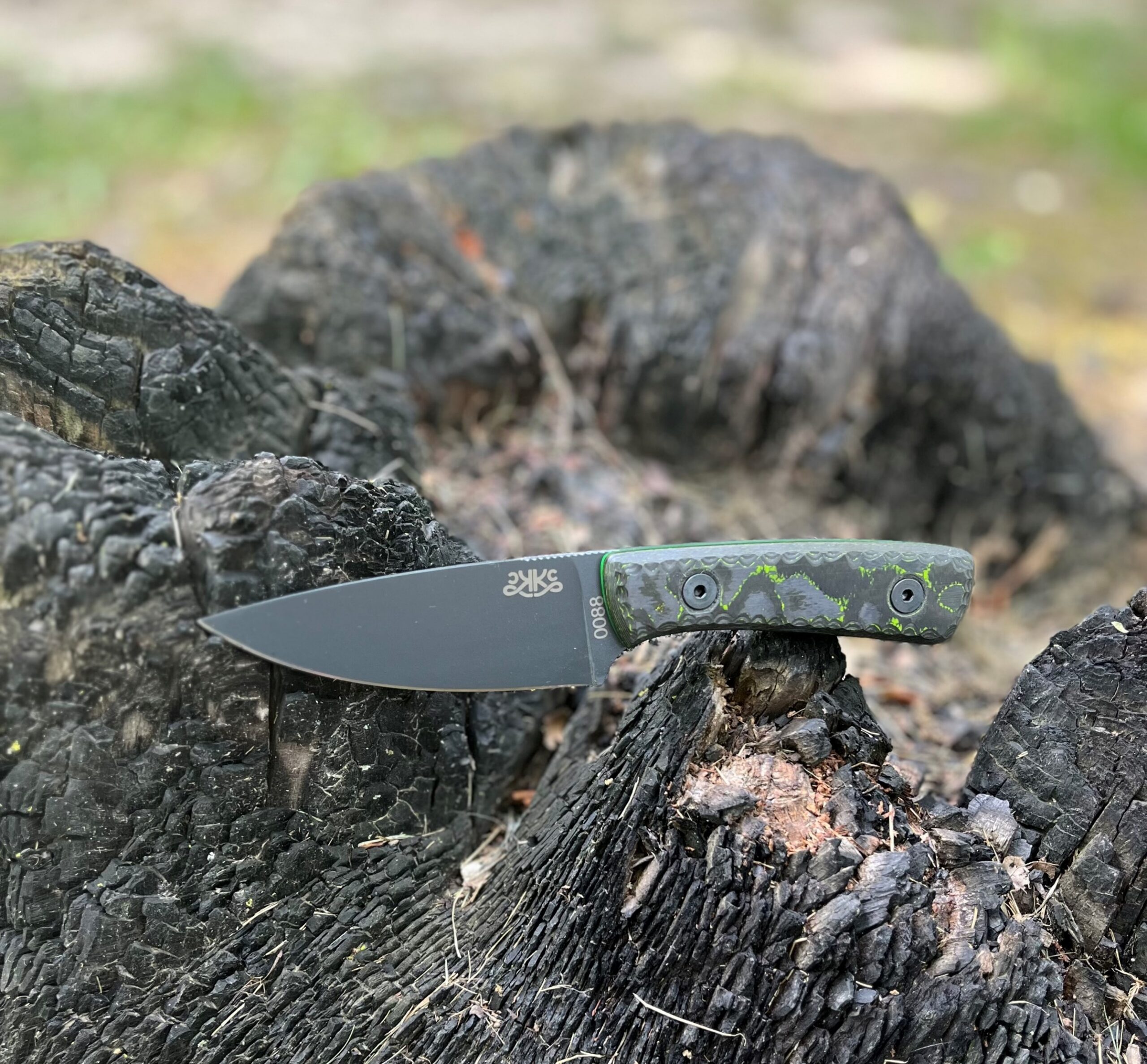 Camo Carbon Gecko with Lime Green Liner - Kickapoo Creek Knife Co.