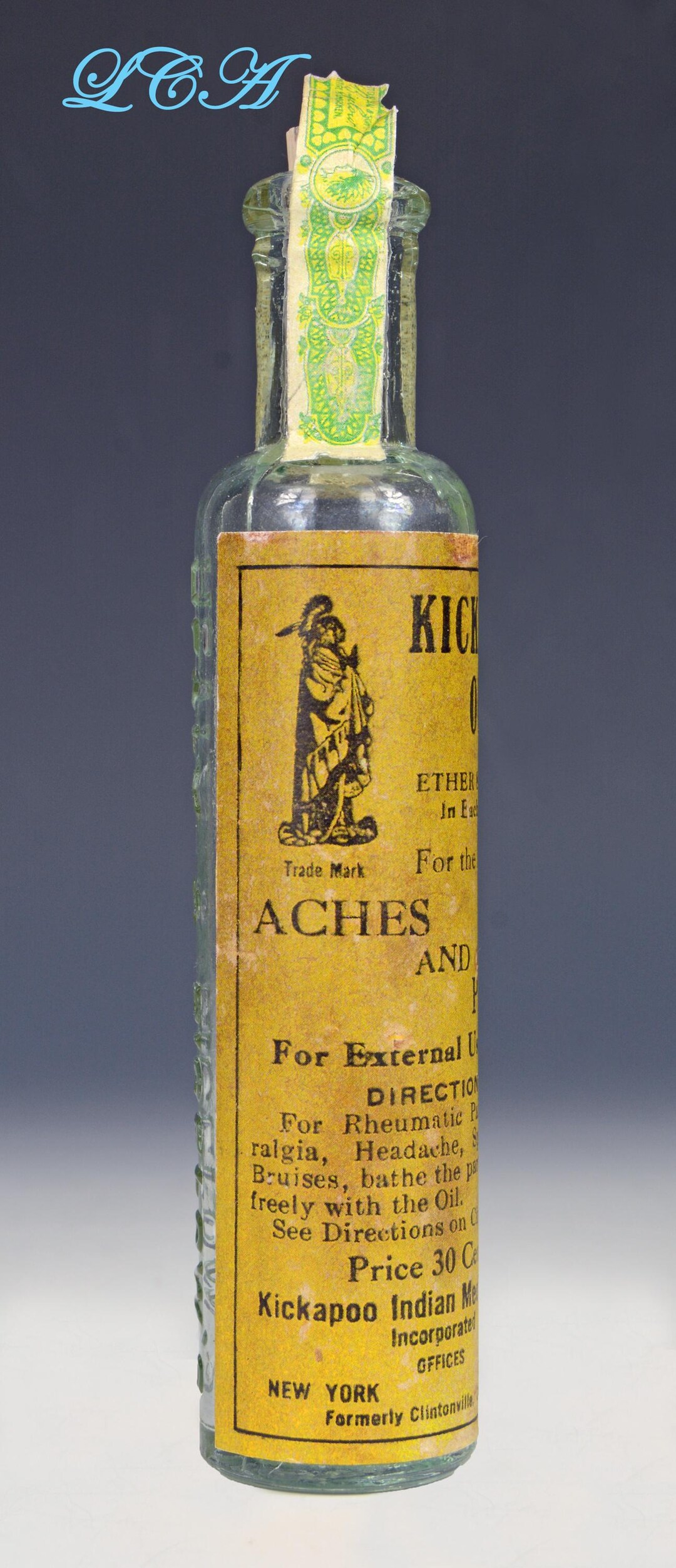 Kickapoo Oil VTG Embossed Bottle with Original Label - Indian Medicine ...