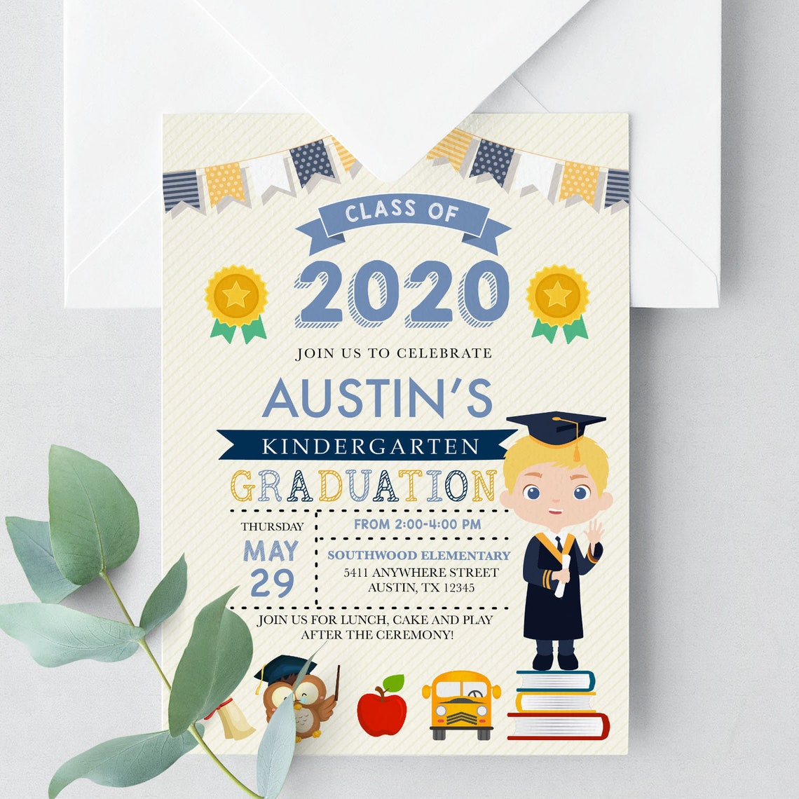 Graduation Invitation, Instant Download, Kindergarten Boy Editable ...