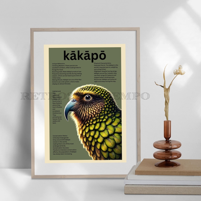 Kākāpō Educational Poster, Endangered Bird Art, Wildlife Conservation ...
