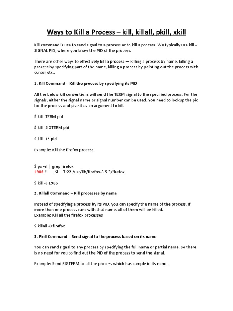 Ways To Kill A Process | PDF | Operating System Technology | Unix
