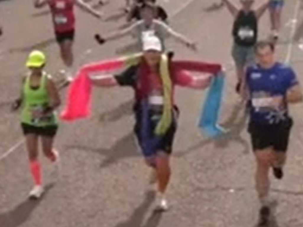 Teilnehmer strickt während 42-Kilometer-Lauf einen Schal