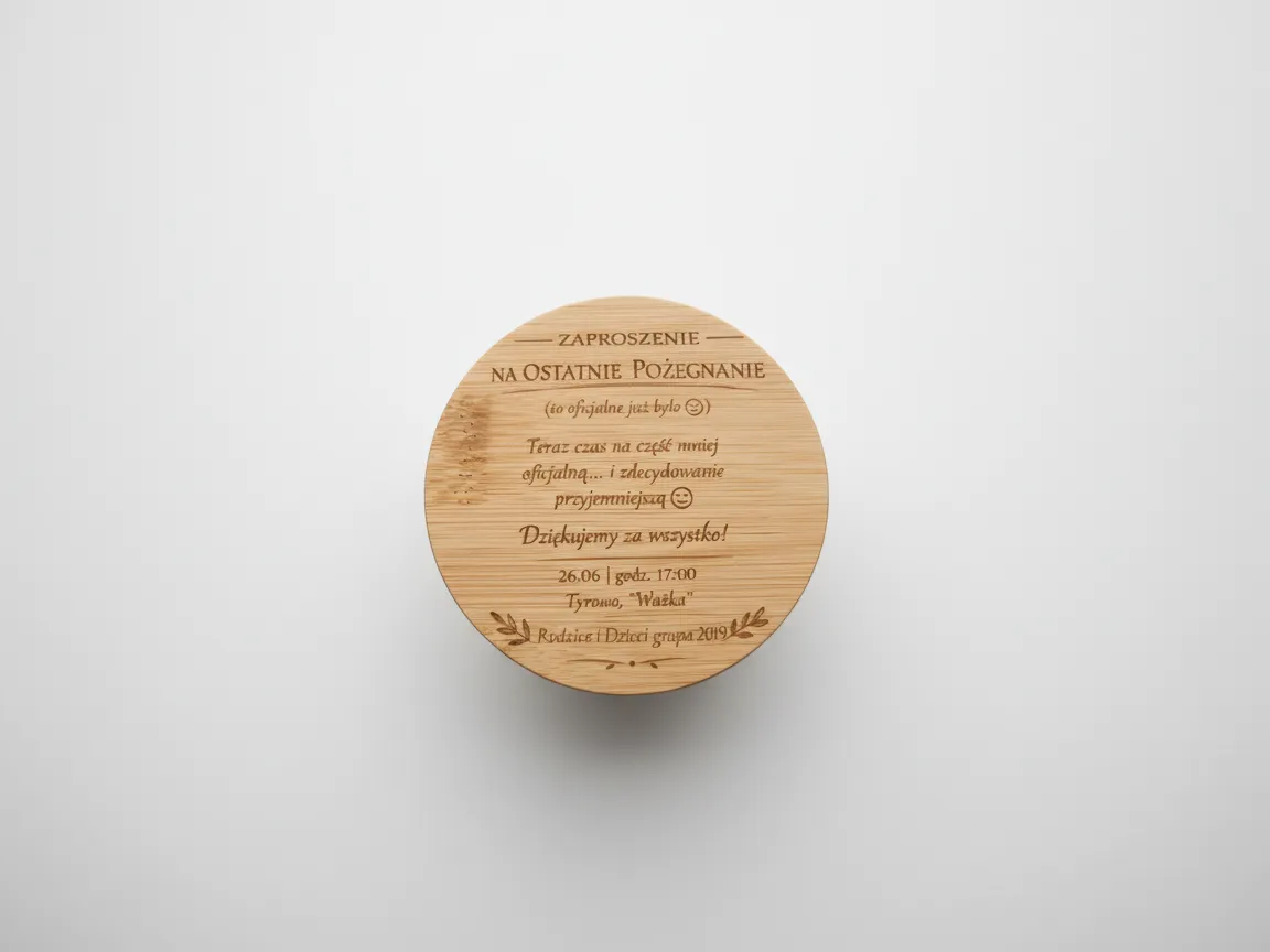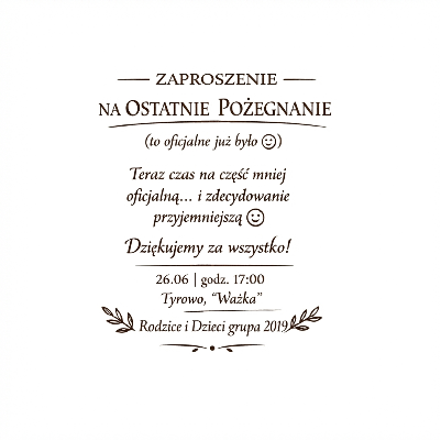 Drewniana tabliczka z zaproszeniem na pożegnanie grupy przedszkolnej ...
