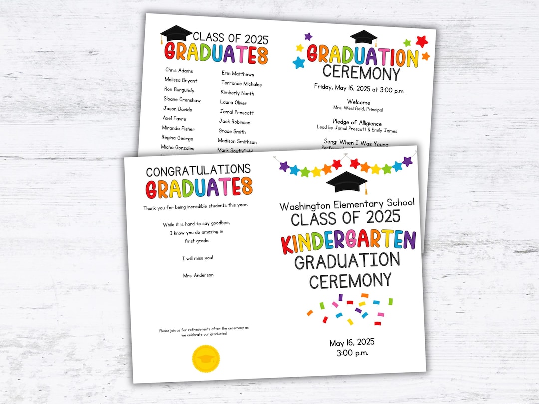 Kindergarten Graduation Program Template Graduation Program - Etsy