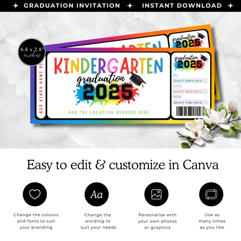 Kindergarten graduation invite template, editable, customise by Ash ...