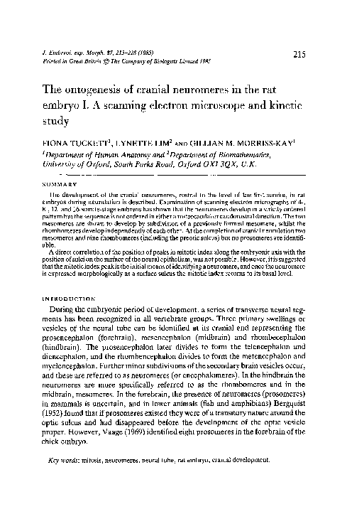 (PDF) The ontogenesis of cranial neuromeres in the rat embryo I. A ...