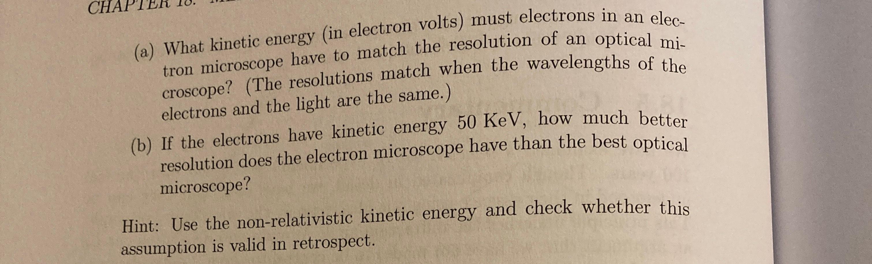 to resolve an object in an electron microscope the wavelength of the ...